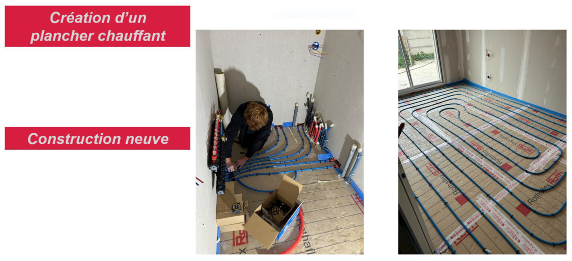 - Étude technique approfondie : analyse de vos besoins, caractéristiques de votre logement et choix de la technologie adaptée (plancher chauffant hydraulique ou électrique).